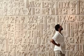 unique conscript characters based black letter, Egyptian hieroglyphics, LA